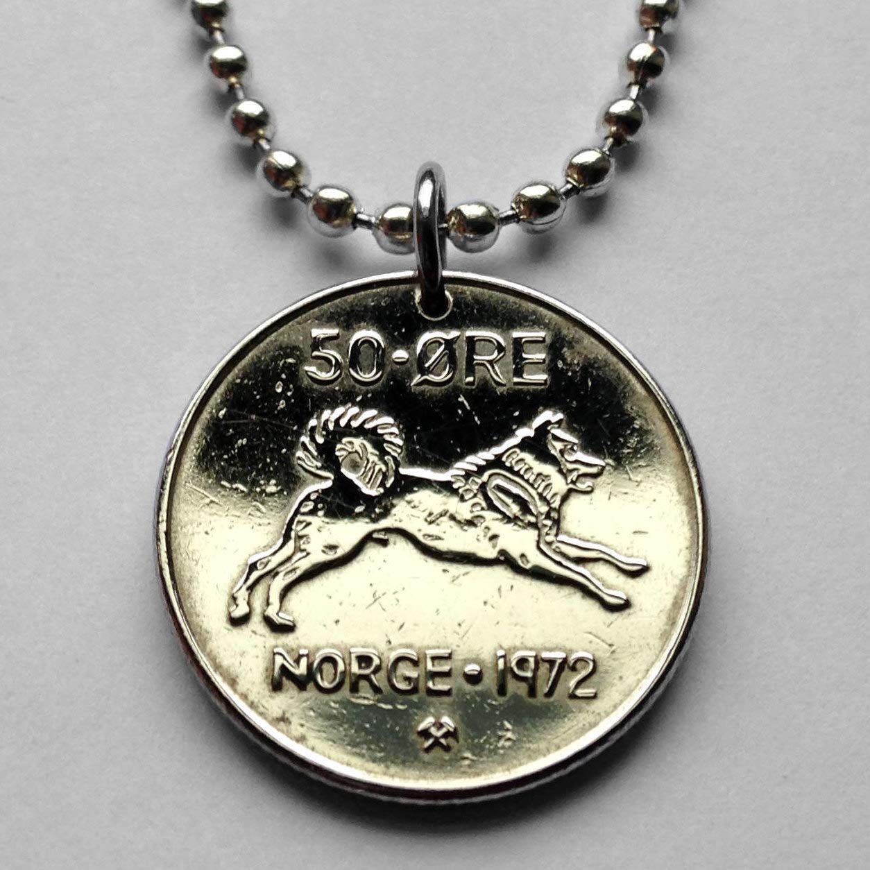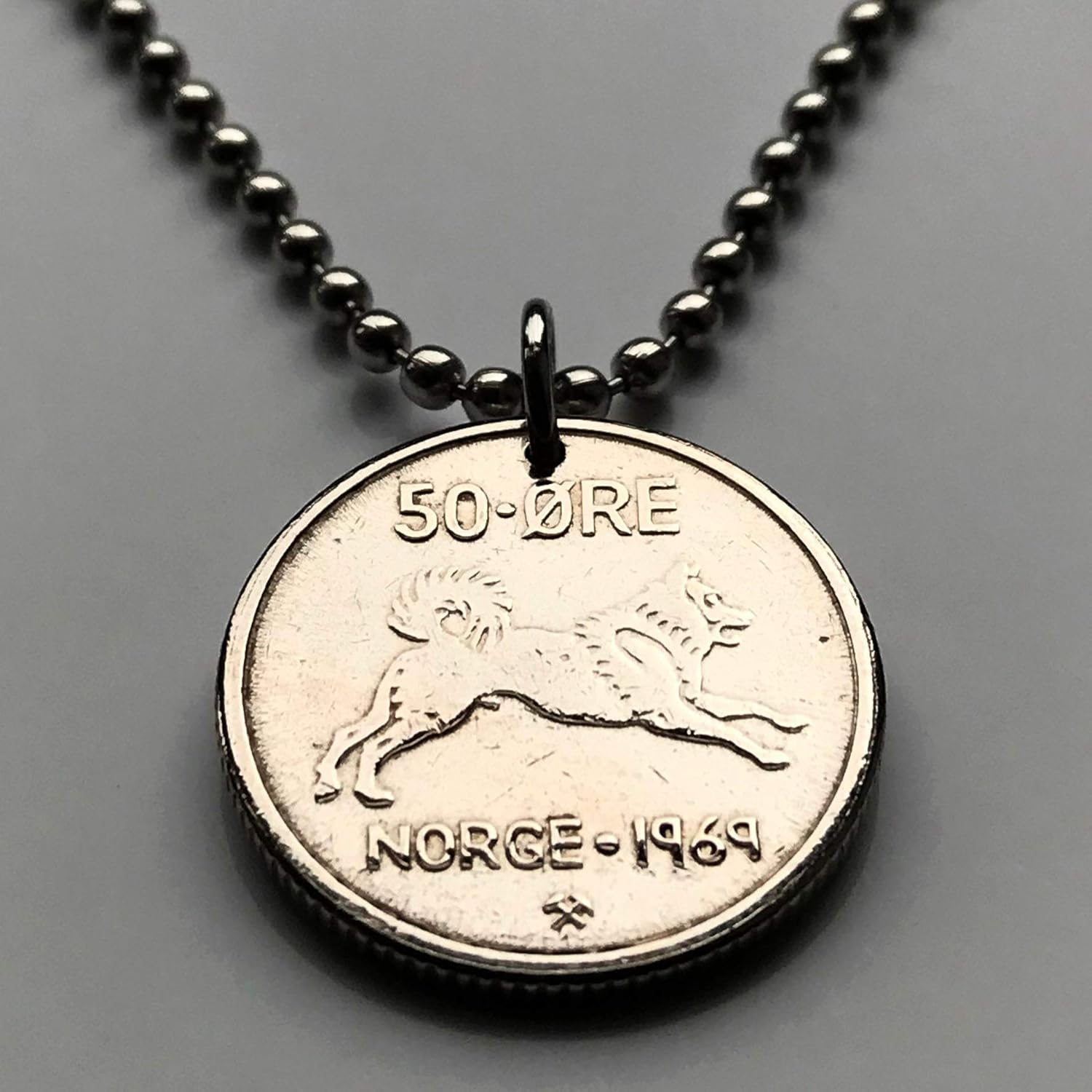 1962 Norway Norge 50 Ore coin pendant Norwegian Elkhound dog husky Oslo Bergen Trondheim Stavanger Sandnes Drammen Nordic Scandinavian Norse Vikings pet puppy hound mascot man’s best friend n000249